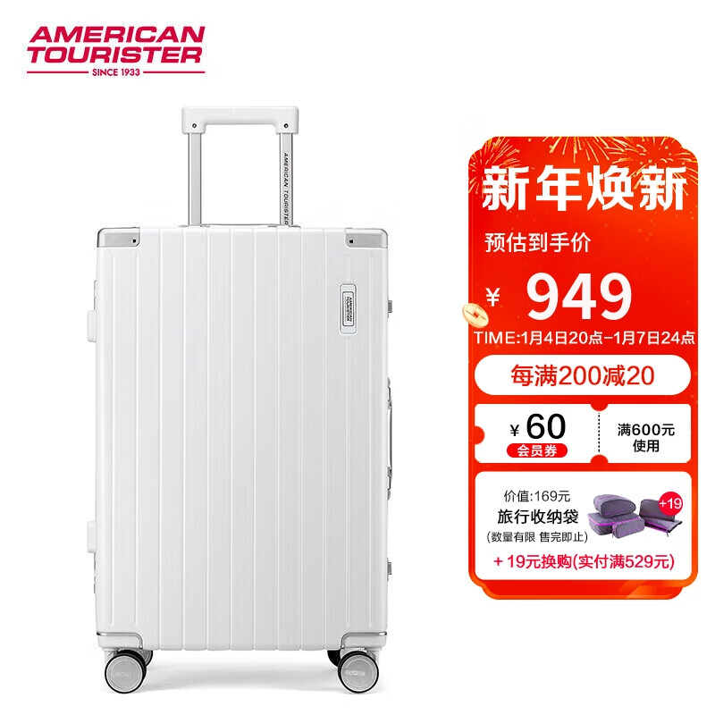 美旅箱包行李箱高颜值铝框拉杆箱24英寸时尚复古旅行箱TI1白色价格:1199.00元!