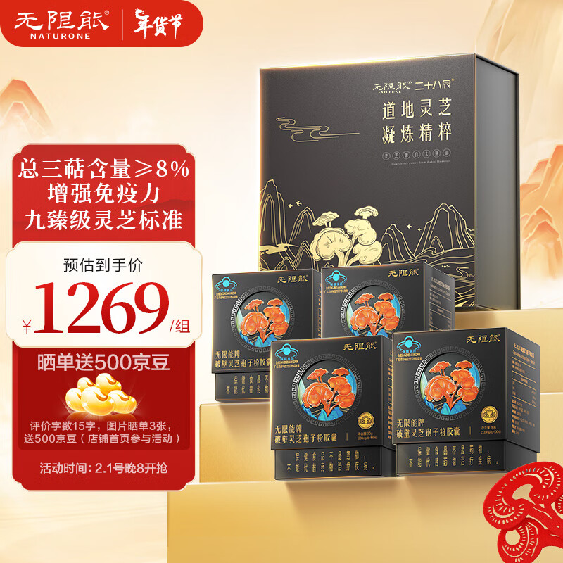无限能 破壁灵芝孢子粉胶囊 灵芝孢子粉 300mg*100粒*4瓶 过年节日挚礼 送长辈送父母价格:2665.00元!