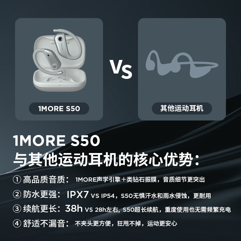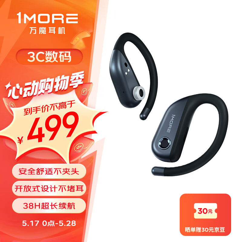 万魔(1MORE)开放式蓝牙耳机 不入耳挂耳式运动耳机 定向传声设计 长续航智能通话降噪S50 星空灰 周杰伦代言价格:499.00元!
