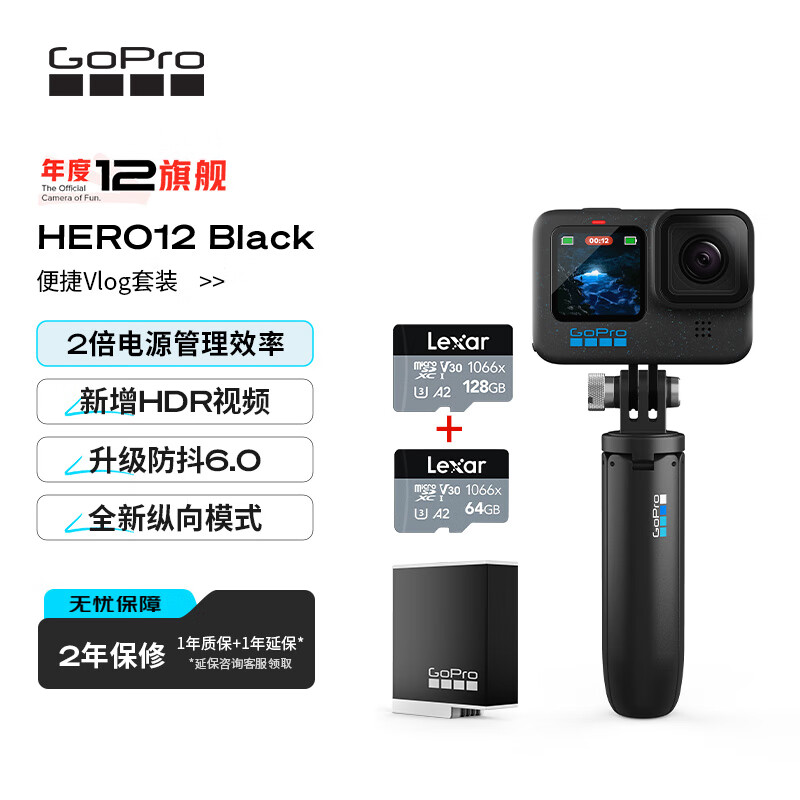 GoProH12 运动相机 户外摩托骑行防抖 水下潜水防水 滑雪照相机 vlog便携套装加128G存储卡套组价格:3443.00元!