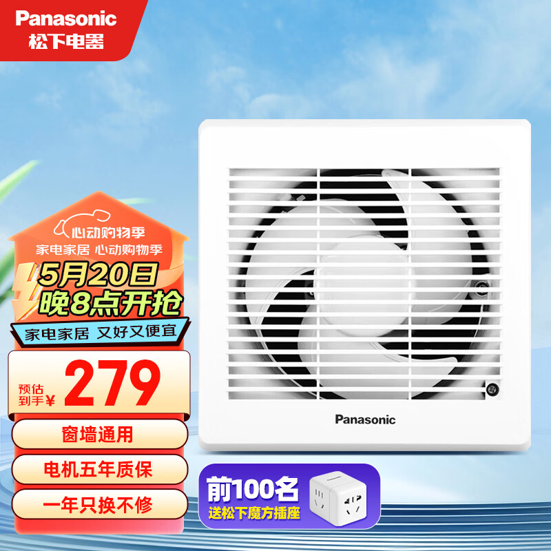 松下(Panasonic) 排气扇厨房排风扇卫生间换气扇玻璃窗式浴室抽风机强力 FV-RV17U1【排风量174】开孔160价格:299.00元!