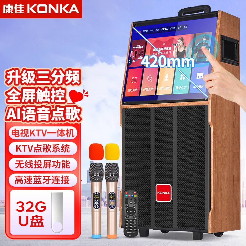 康佳(KONKA)D102S户外广场舞音响带显示屏触屏网络唱歌移动KTV拉杆蓝牙音箱老人跳舞K歌语音点歌一体视频机价格:1259.00元!