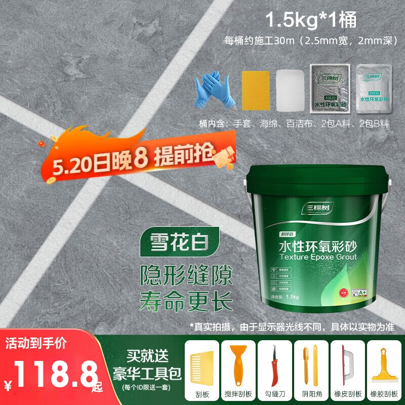 三棵树漆(SKSHU)水性环氧彩砂桶装美缝剂耐磨耐水客厅厨卫地砖瓷砖胶 雪花白价格:118.80元!