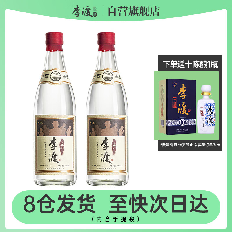 李渡 匠心 兼香型白酒 52度 500ml*2瓶 双支装(内含手提袋)价格:808.00元!