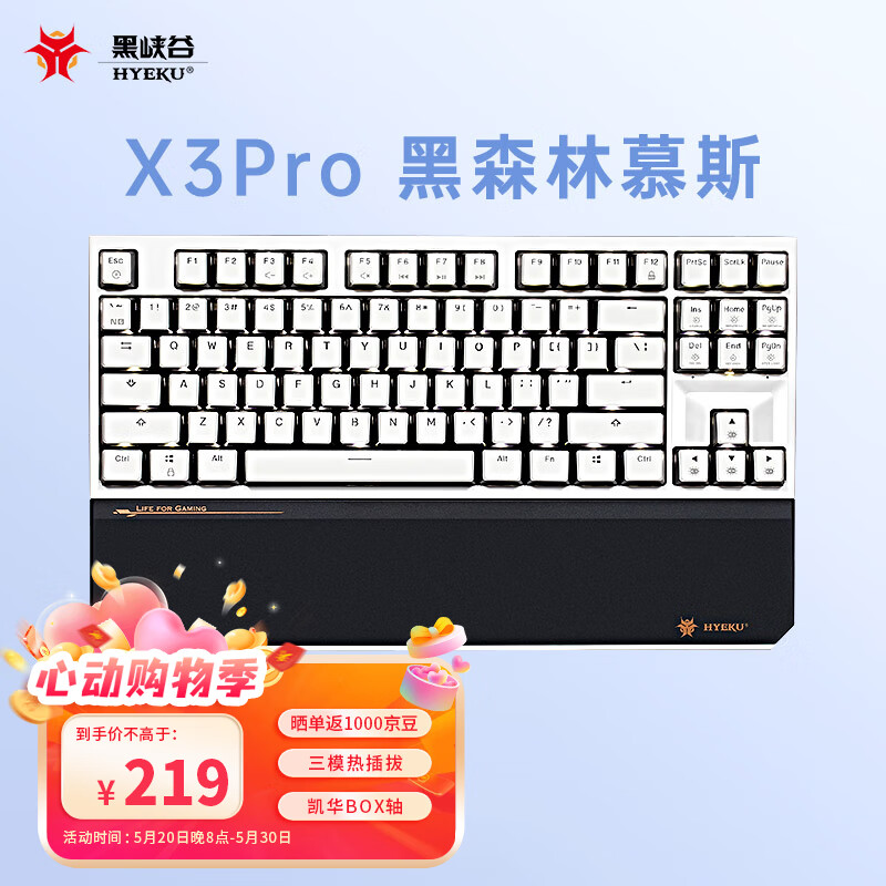 黑峡谷(Hyeku)X3Pro 87键无线蓝牙三模机械键盘热插拔吸音棉PBT键帽 附卡扣手托 黑森林慕斯 BOX天空蓝轴价格:269.00元!