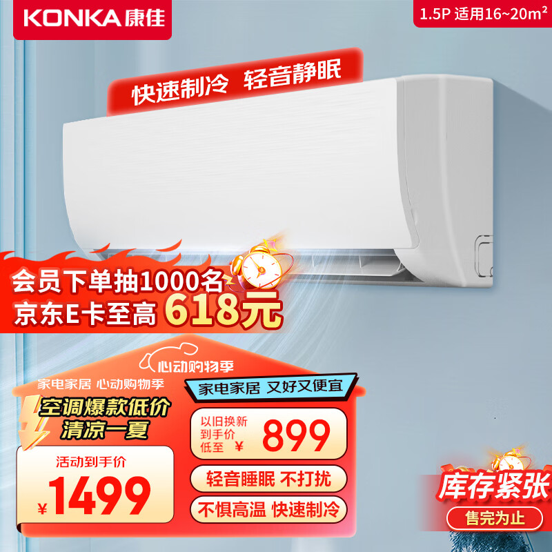 康佳(KONKA) 1.5匹 新能效 快速冷暖 一键节能 壁挂式卧室 以旧换新 空调挂机 KFR-35GW/9M5价格:1498.00元!