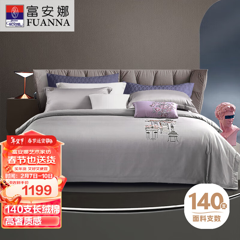 富安娜(FUANNA)家纺高档床上四件套140s双股皮马棉A类高支高密被套203*229cm灰价格:2399.00元!