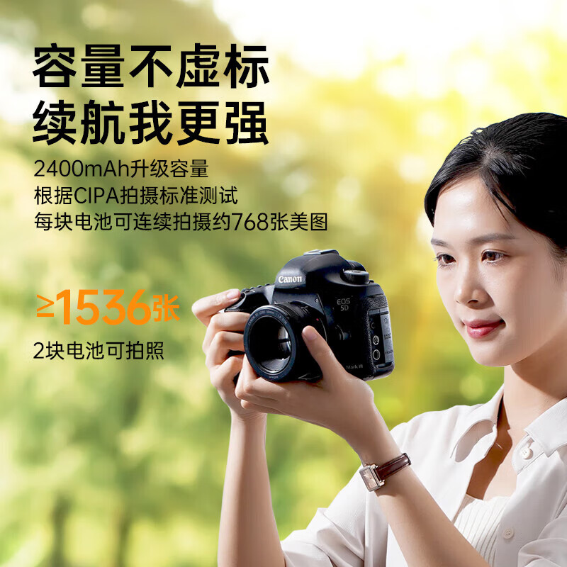 绿巨能(llano)佳能LP-E6NH相机电池5d4直充电池r6 5d3 6d2 90d 6d 70d 80d单反微单电池Type-C接口2400mAh价格:209.00元!