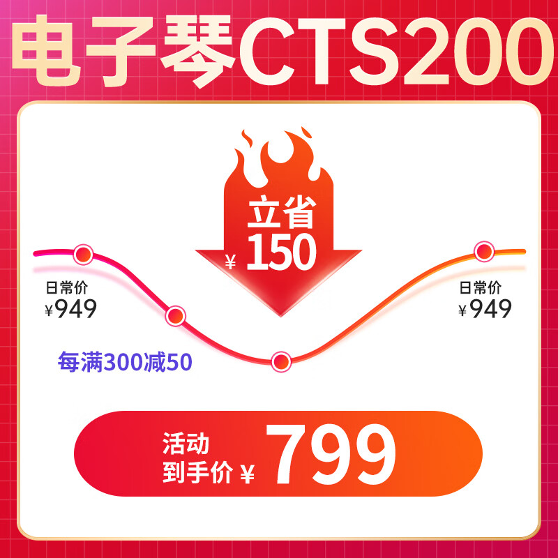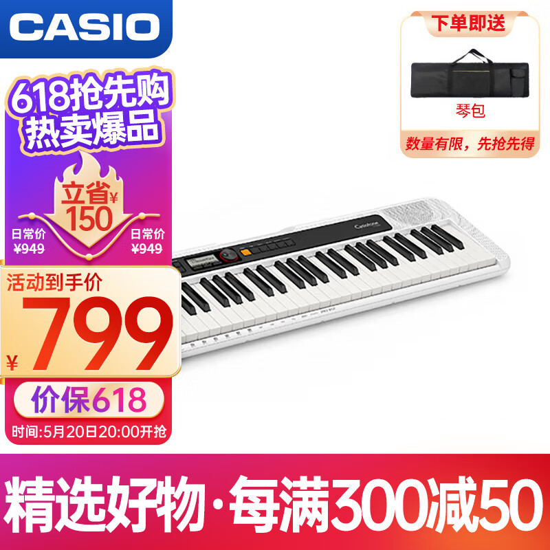 卡西欧(CASIO)电子琴CTS200白色时尚便携潮玩儿童成人娱乐学习61键单机款价格:949.00元!