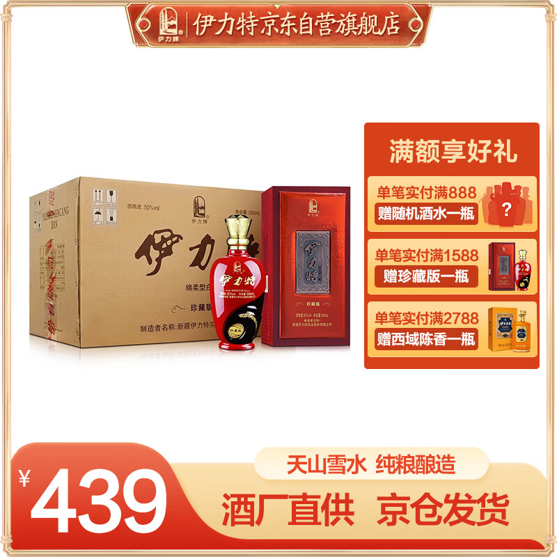 伊力特珍藏版 绵柔型白酒 50度 500ml*6瓶整箱装价格:439.00元!