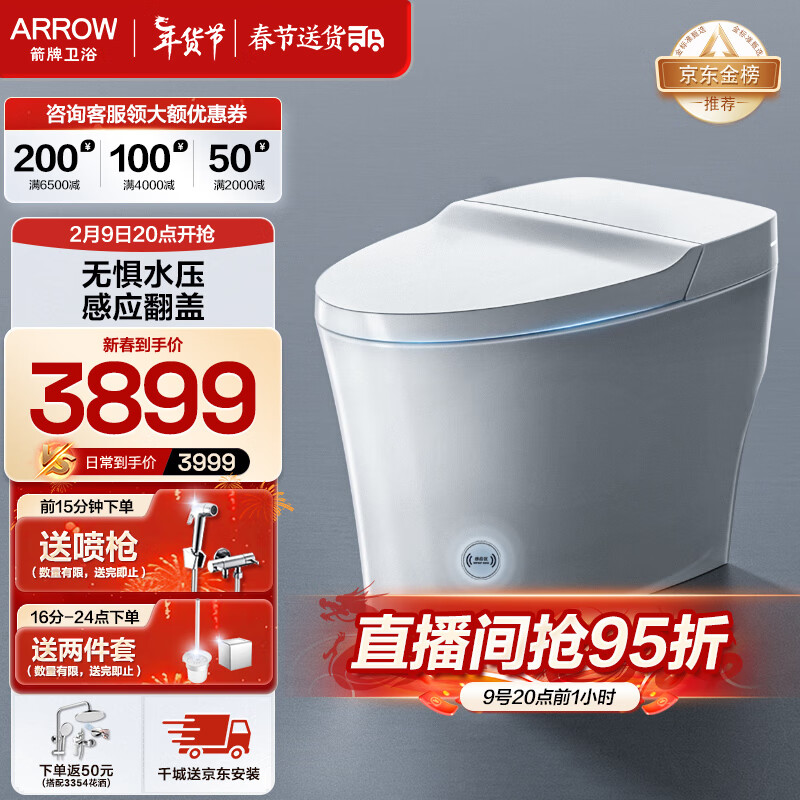 箭牌(ARROW)智能马桶恒温座圈按摩加热坐便器 低水压脚感翻盖翻圈AKE1135L价格:6427.00元!