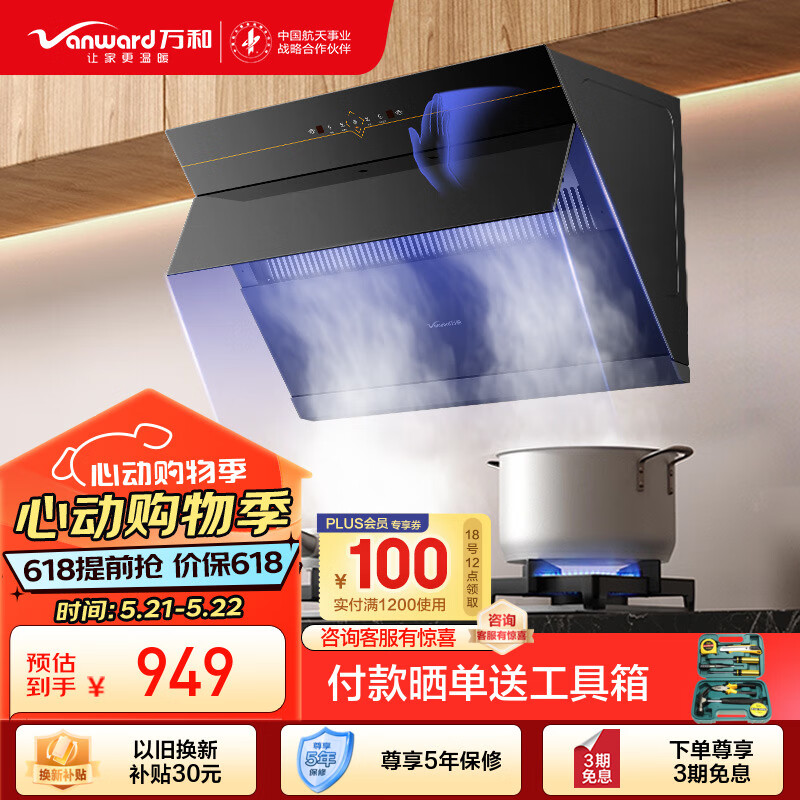 万和(Vanward)侧吸式抽油烟机家用厨房油烟机 23立方米大吸力 脱排油烟机排油烟机 自清洗挥手智控吸油烟机DJ738价格:1349.00元!