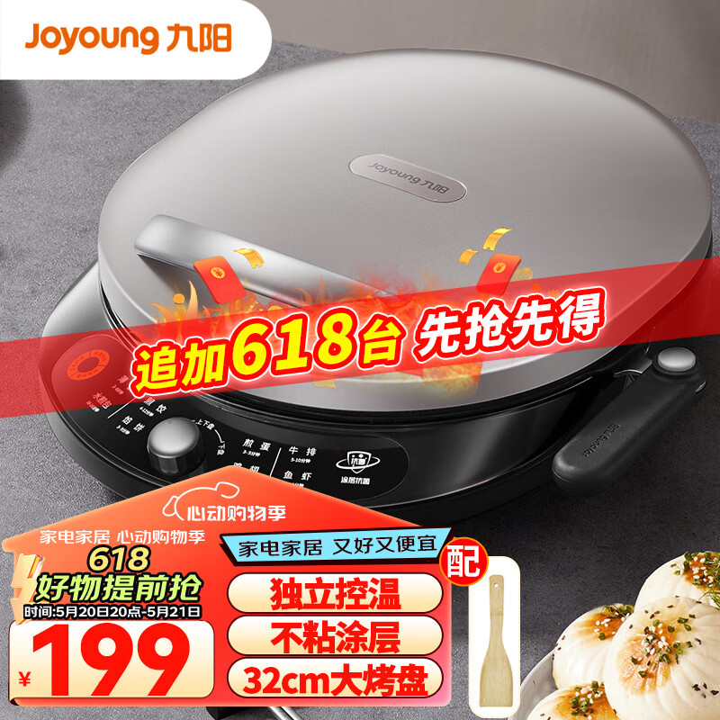 九阳(Joyoung)家用电饼铛 早餐机 大火力煎烤机烙饼机 下盘可拆 折叠把手 32cm大尺寸烤盘 JK32-GK525价格:199.00元!