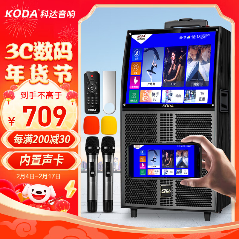 科达(KODA)KD 户外广场舞音响带显示屏家用k歌便携蓝牙移动家庭ktv拉杆音箱视频机播放器点歌一体机价格:799.00元!