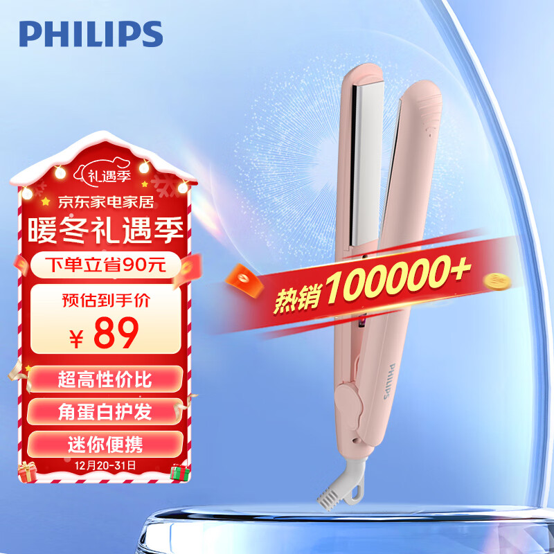 飞利浦(PHILIPS)电卷发棒 直板夹 卷直两用 蓬松发根刘海夹 迷你学生? HP8401/55粉色价格:89.00元!