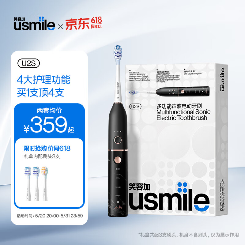 usmile笑容加电动牙刷 情侣款 成人款声波级电动牙刷 大理石黑色价格:419.00元!