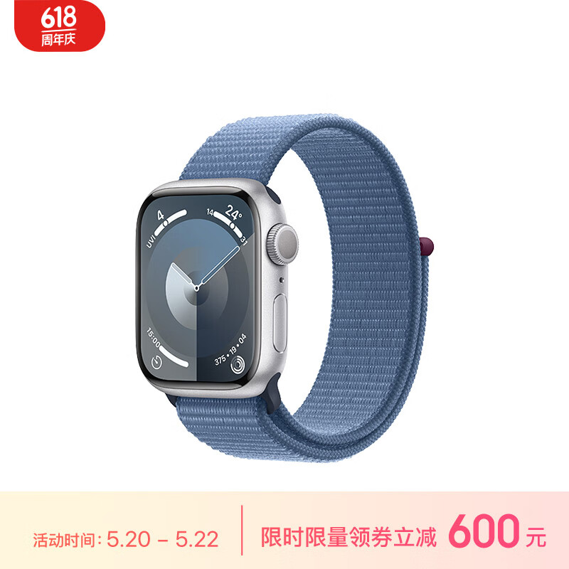 Apple/苹果 Watch Series 9 智能手表GPS款41毫米银色铝金属表壳 凛蓝色回环式运动表带 MR923CH/A价格:2999.00元!