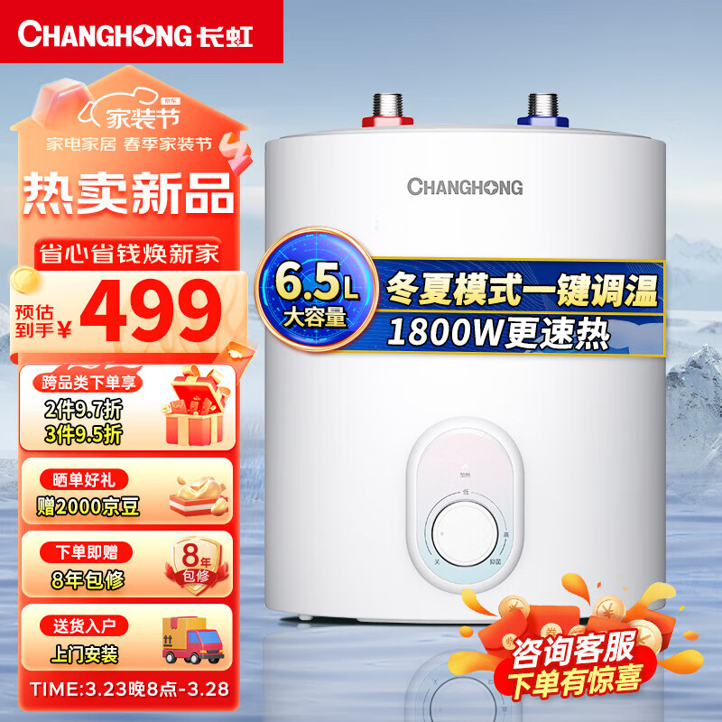 长虹(CHANGHONG) 长虹(CHANGHONG)6.5L上出水家用小厨宝 1800W速热厨房小型热水器多重防护抗压防腐6M1价格:599.00元!