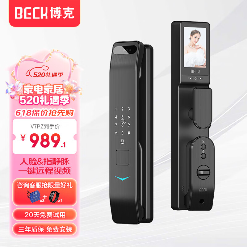 BECK博克BECK指静脉密码锁智能门锁电子锁智能锁3D人脸识别大屏猫眼V7PZ价格:1499.00元!