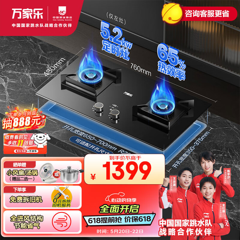 万家乐燃气灶 5.2kw大火力天然气灶 智能定时灶嵌入式灶烟灶联动全进风台嵌两用可调节开孔JZT-AY9天然气价格:1499.00元!