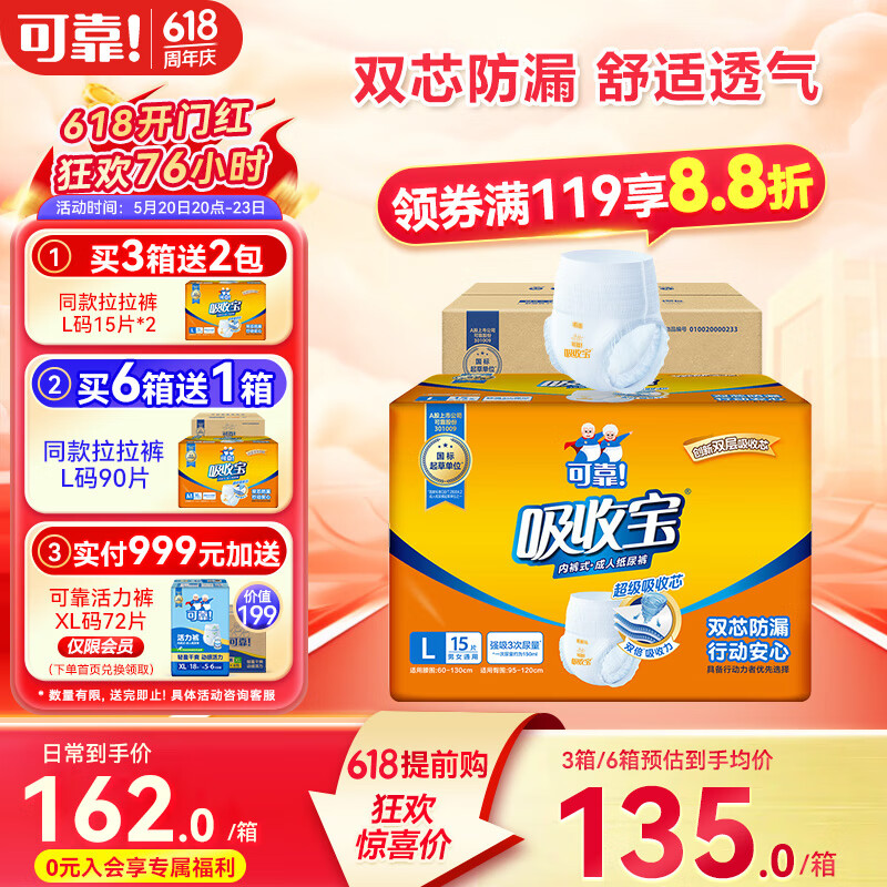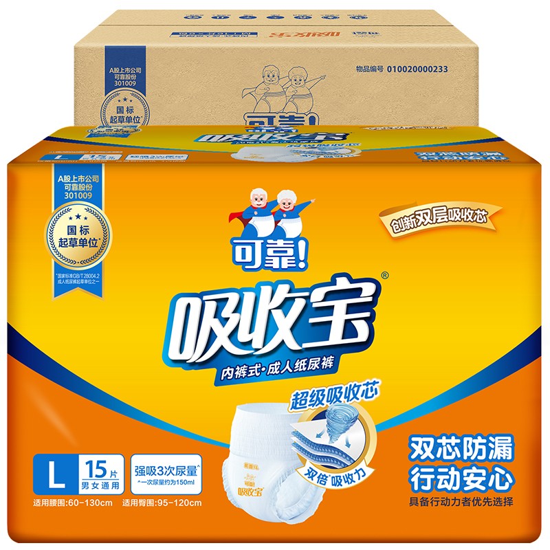 可靠(COCO)吸收宝成人拉拉裤臀围95-120cm L90片内裤型纸尿裤老年人尿不湿价格:204.00元!