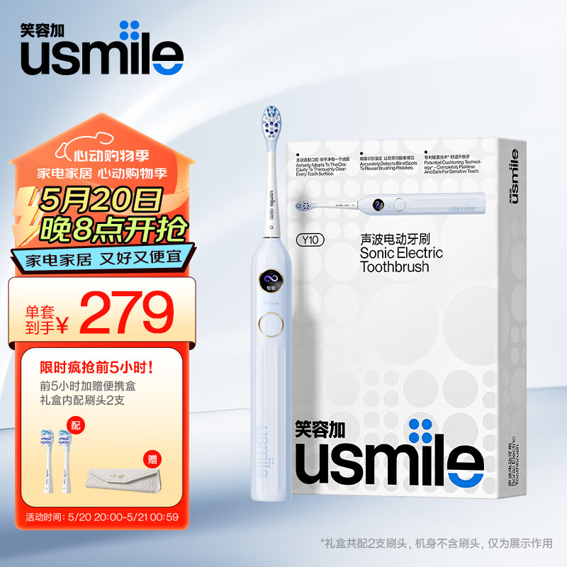 usmile笑容加电动牙刷 成人声波震动电动牙刷 情侣款送男友/送女友 Y10净蓝 520情人节礼物价格:269.00元!