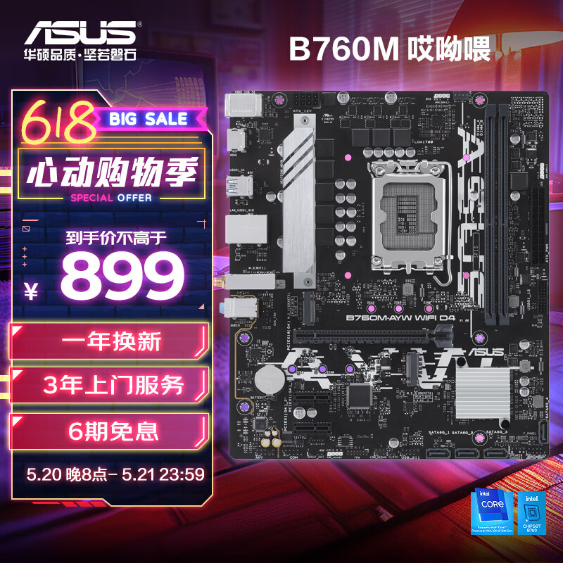 华硕(ASUS)B760M-AYW WIFI D4 哎呦喂主板 支持 CPU 13600KF/13400F(Intel B760/LGA 1700)价格:899.00元!