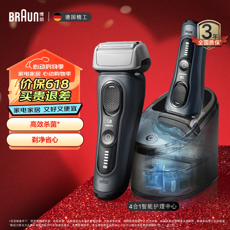 博朗(BRAUN)520礼物送男朋友旗舰8系Pro清洁款电动剃须刀整机德国进口往复式剃须刀刮胡刀生日礼物 男送男友价格:1259.00元!