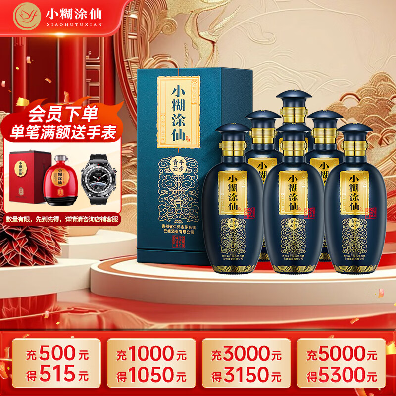 小糊涂仙 平步青云 浓香型白酒 52度 500ml*6瓶 整箱装 贵州 送礼佳品价格:2394.00元!