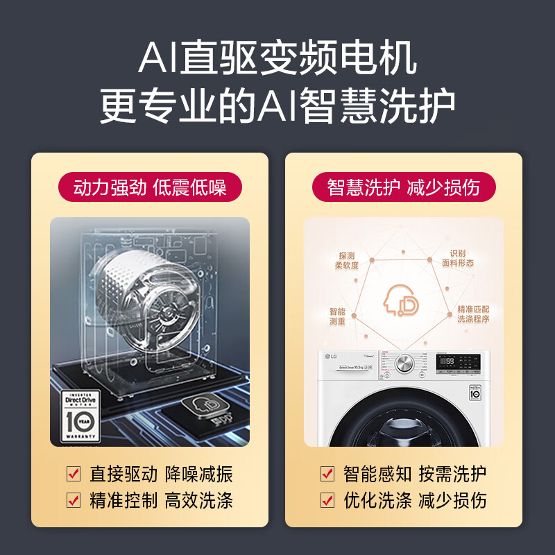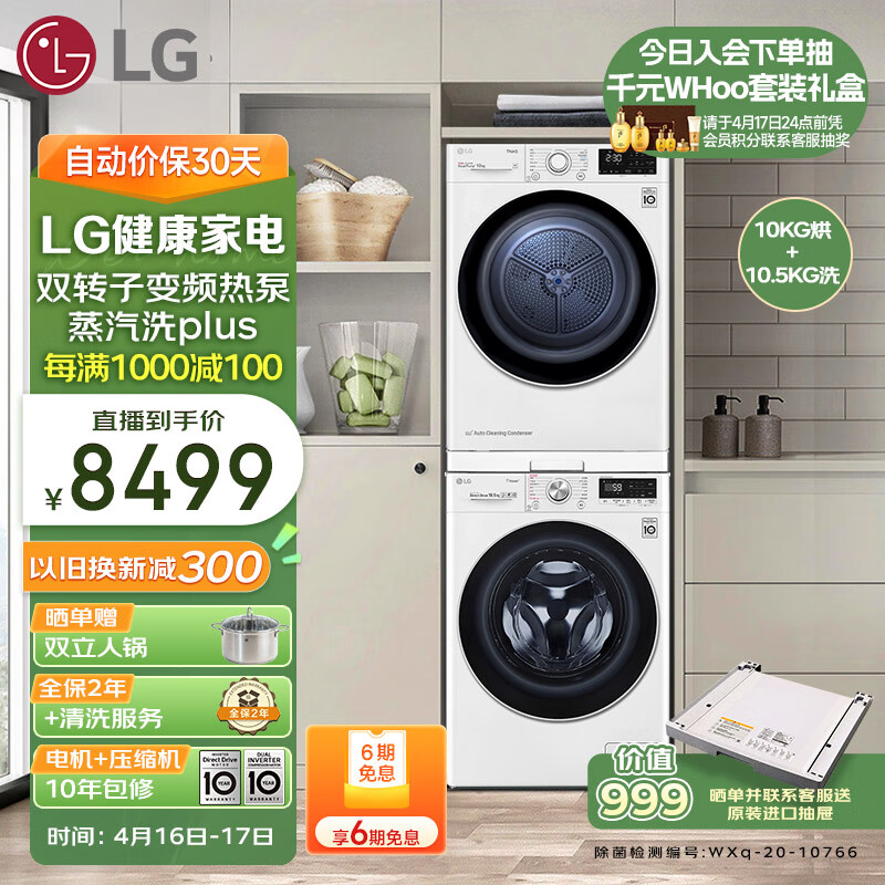 LG 洗烘套装10.5kg蒸汽除菌+10kg双转子变频热泵烘 除菌除螨FLW10G4W+RH10V3AV6W(附件商品仅展示)价格:10099.00元!