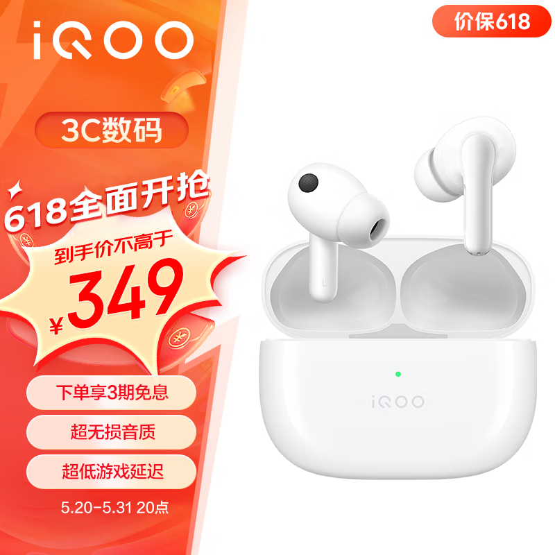 vivo iQOO TWS 1 真无线降噪耳机 燃白 智能降噪无损音质低游戏延迟价格:349.00元!