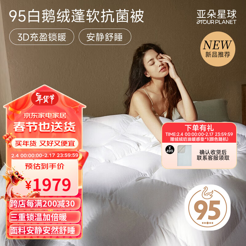 亚朵星球 蓬软抗菌 A类 95%白鹅绒被 羽绒被子 冬被 1100g 200*230cm白价格:3200.00元!