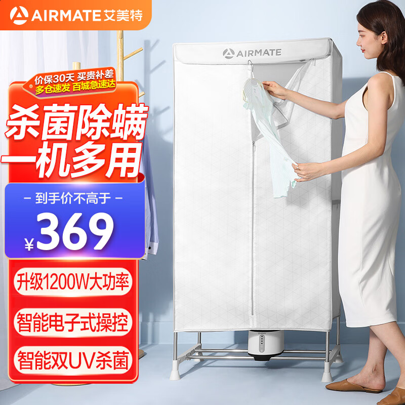 艾美特(AIRMATE)【UV杀菌】干衣机/烘干机家用/小型烘干衣柜 双层婴儿衣柜 大功率1200W HG12-M6价格:399.00元!