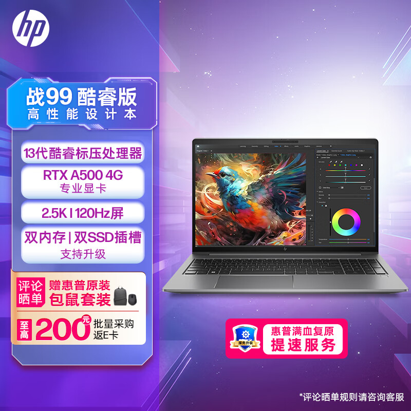 惠普(HP)战99 23款15.6英寸高性能笔记本AI电脑设计师本工作站?i7-13700H 16G 1TSSD RTXA500 2.5K屏价格:9299.00元!