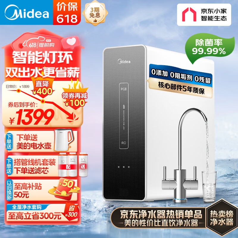 美的(Midea)麒麟J600S净水器 家用RO反渗透直饮 厨下纯水机 双出水净水机-600G1.5L/分 京东小家智能生态价格:1499.00元!