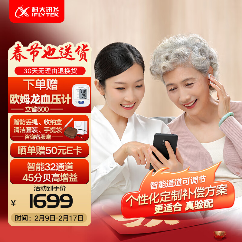 科大讯飞耳内式助听器老年人耳聋耳背无线入耳式隐形充电耳机 中重度32通道双耳降噪-尊享版【白色】价格:2199.00元!