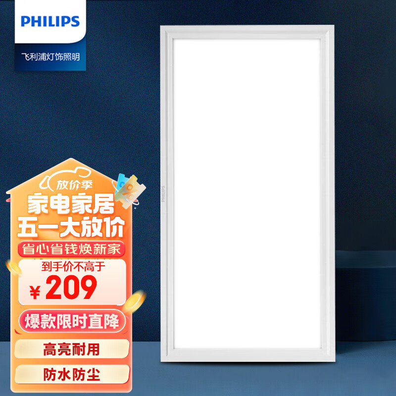 飞利浦集成吊顶平板灯超薄厨房卫生间面板灯 升级款24W 6500K 300*600价格:209.00元!