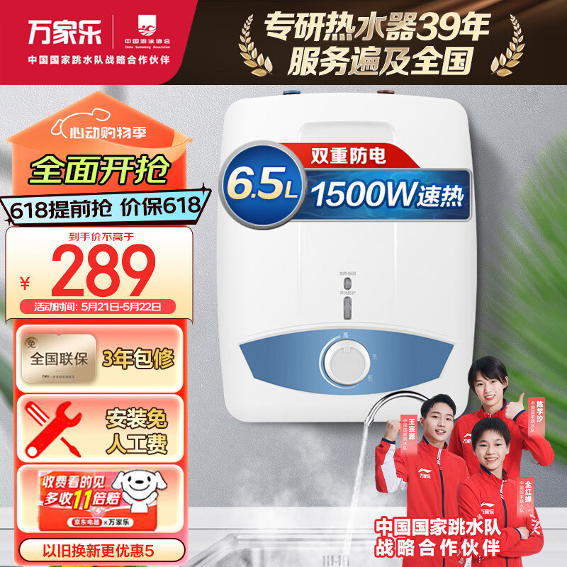 万家乐 6.5升大容量 三层内胆 上出水 1500W速热小厨宝 双重安防 电热水器D6.5-S11AS价格:299.00元!