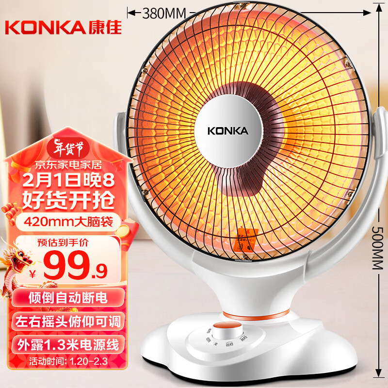 康佳(KONKA)取暖器家用小太阳电暖器速热电暖气台式电热取暖烤火炉可摇头 KH-TY06A价格:99.80元!