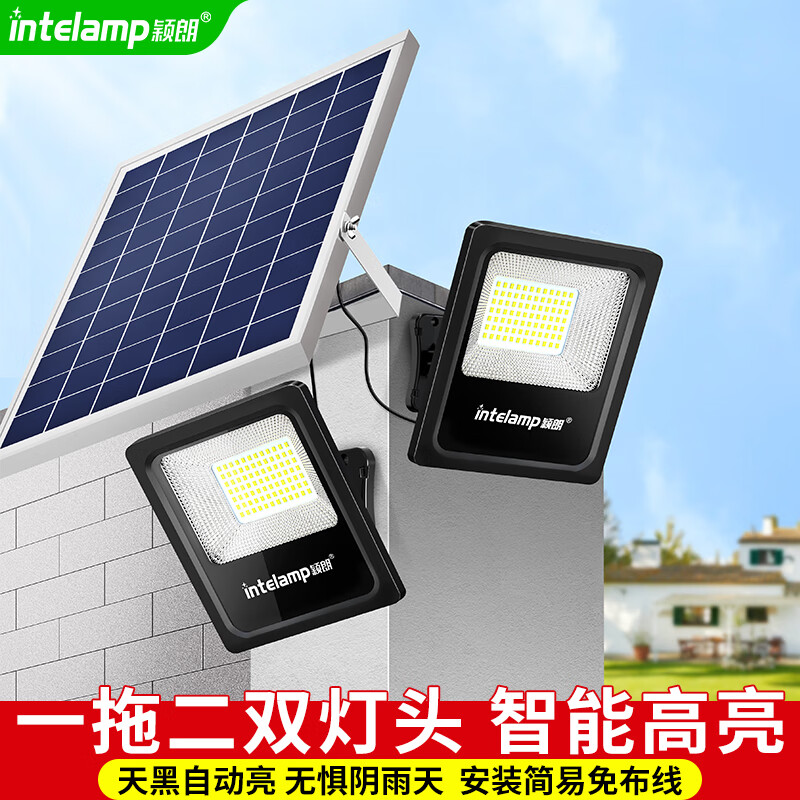 颖朗太阳能投光灯一拖二庭院照明led户外防水新农村大功率室外露营灯价格:398.00元!