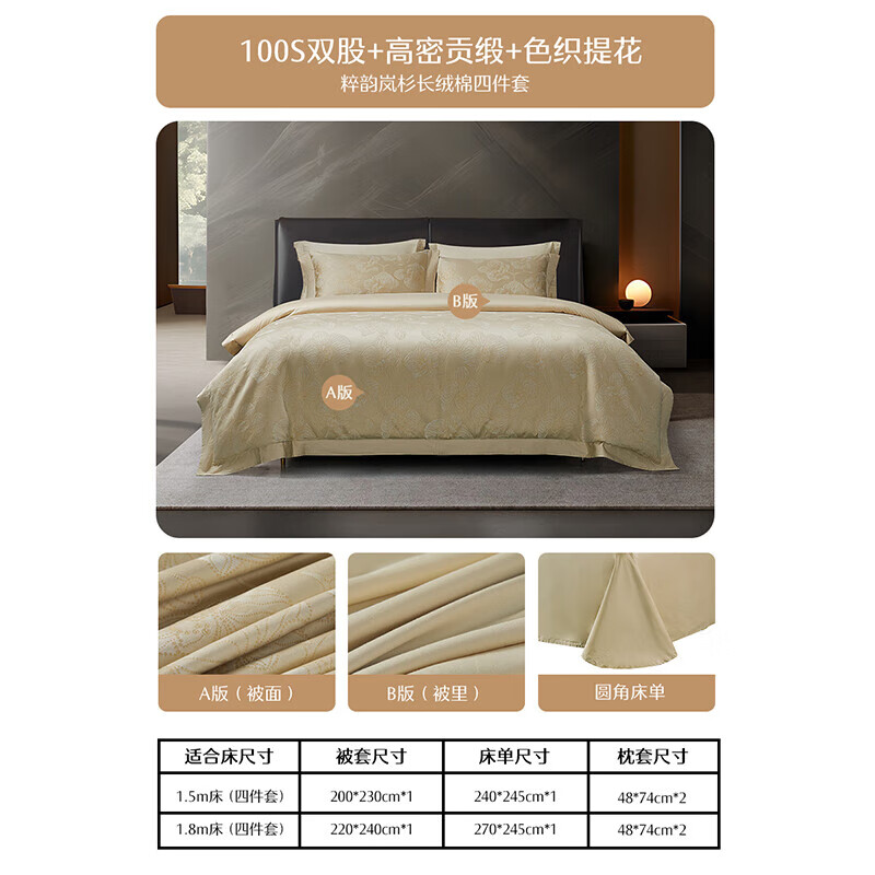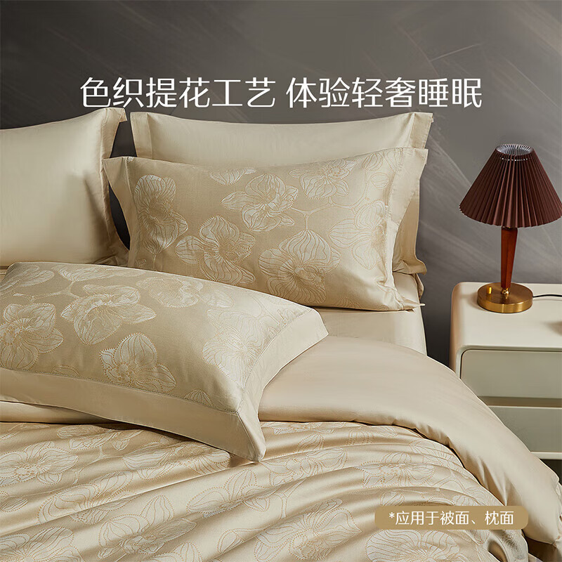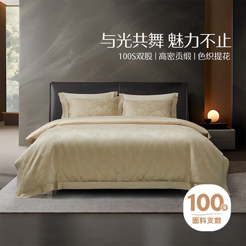 水星家纺 100支新疆长绒棉四件套艺术提花床上套件1.5m床 粹韵岚杉价格:2499.00元!