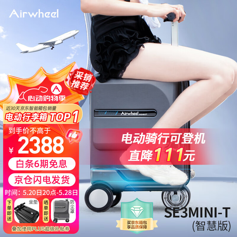 Airwheel爱尔威电动行李箱骑行拉杆箱代步登机箱20英寸男女儿童箱包可坐价格:2499.00元!