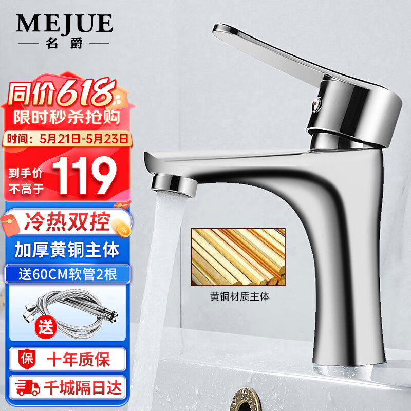 名爵(MEJUE)面盆水龙头冷热黄铜龙头浴室单孔卫生间洗脸盆洗手池龙头Z-1247价格:129.00元!