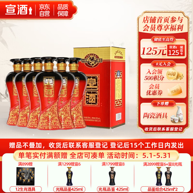 宣酒 红宣 浓香型白酒 50度 500ml*6瓶 整箱装 小窖酿造价格:463.00元!