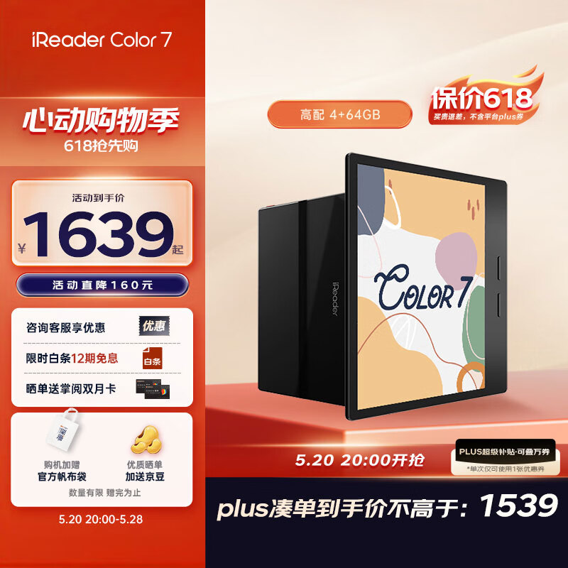 掌阅iReader Color7 彩色墨水屏 7英寸电纸书阅读器 高刷智能电子书平板 轻量便携 看书看彩漫 4+64GB价格:1639.00元!