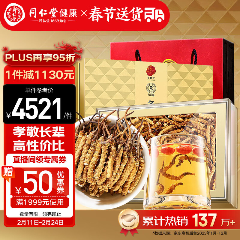 北京同仁堂 青源堂【年货礼盒送长辈】冬虫夏草 50克断草 高品质断草无空草冻干送父母礼品价格:5652.00元!