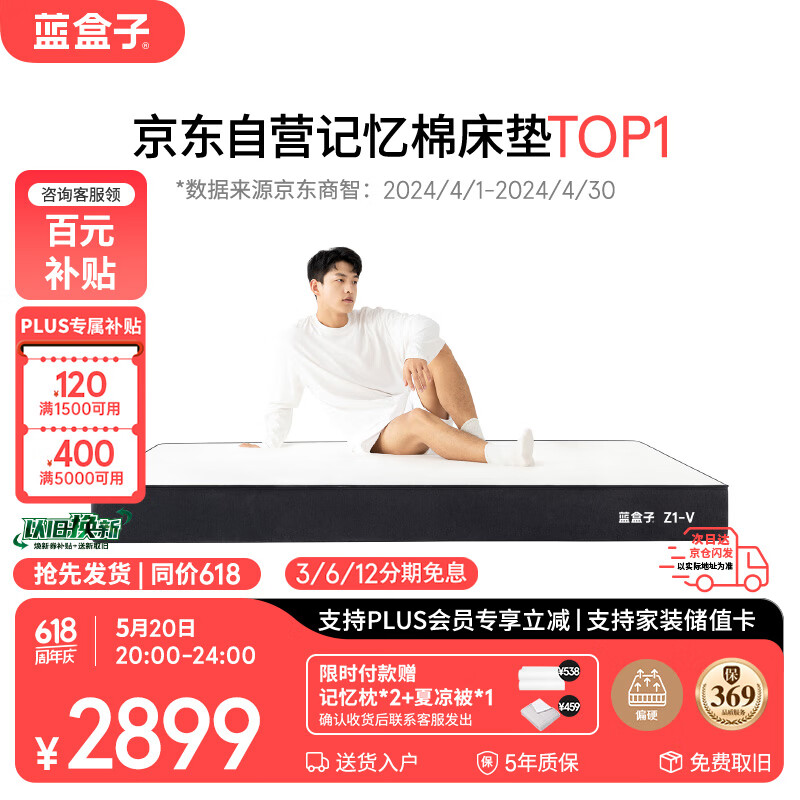 蓝盒子Z1-V偏硬快支撑记忆棉弹簧床垫老人孕妇家用五酒店 150*200cm价格:4029.00元!