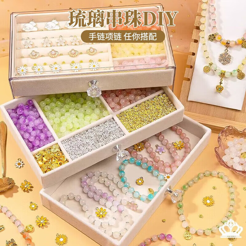 煦贝乐儿童DIY手工串珠玩具女孩礼物手链项链手串菩提玻璃玉盘珠奢享六一节日价格:169.00元!