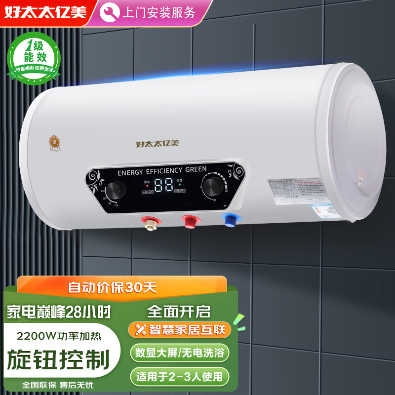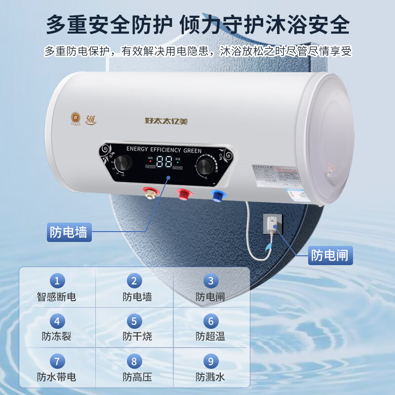 好太太亿美热水器电热水器速热圆桶50升一级能效2000W卫生间洗澡家用出租房小型热水器DSZF-50A 上门安装价格:338.00元!