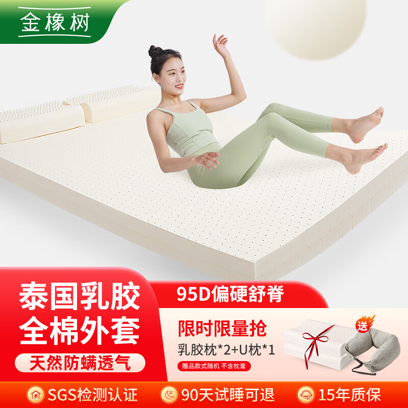 金橡树床垫 泰国进口天然乳胶床垫加厚垫子榻榻米橡胶单双人加硬云梦95D价格:1222.00元!